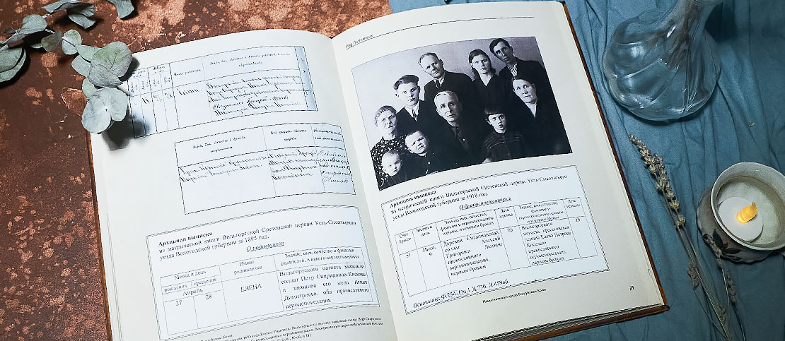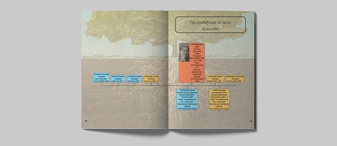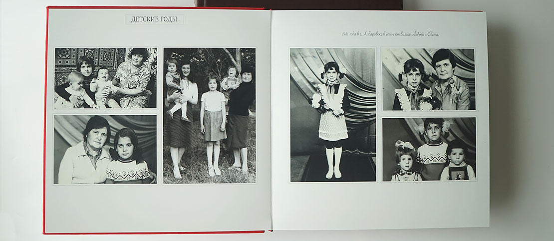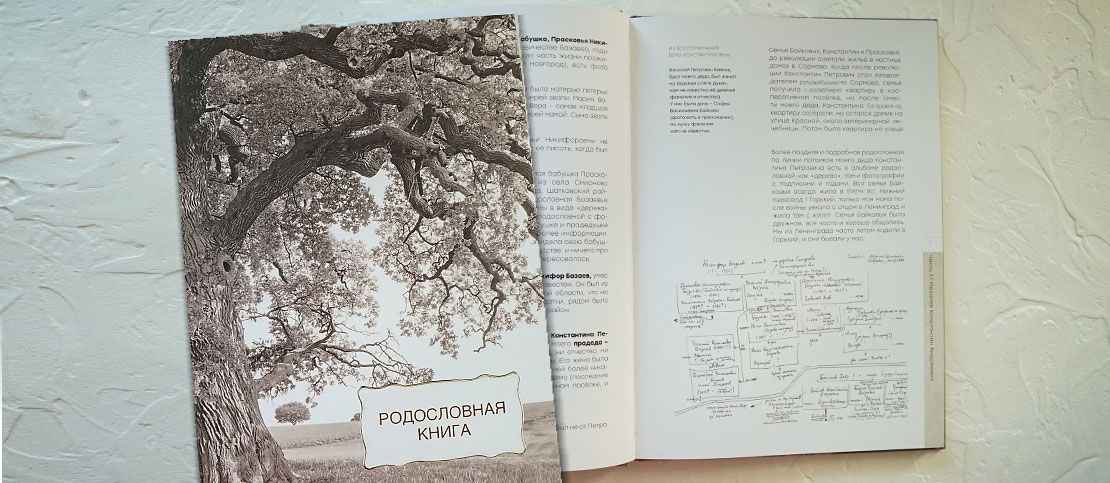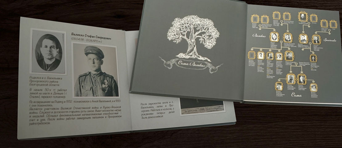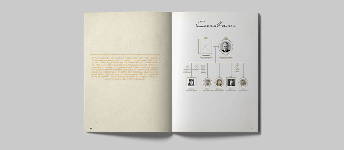 Книга с историей одного человека или нескольких семей рода. Сбор и структурирование информации производится с помощью интервью и разбора семейного архива фотографий и документов. Срок выполнения: от 1,5 месяцев.