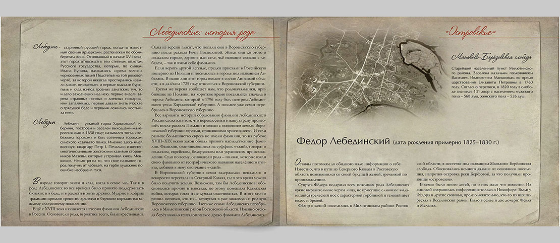 Структурирование и оформление результатов генеалогического поиска в наглядном и красивом виде. Включает в себя публикацию большого числа документов, дополненную семейными фотографиями. Возможно как оформление предоставленных Вами данных, так и привлечение наших специалистов к поиску нераскрытых страниц истории Вашей семьи. Срок выполнения: от 1,5 месяцев.