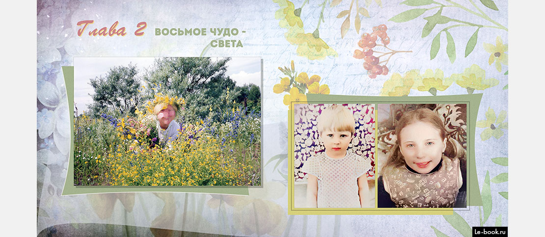 Достаточно 4-8 фотографий на главу. Используйте фотокарточки с самого рождения.